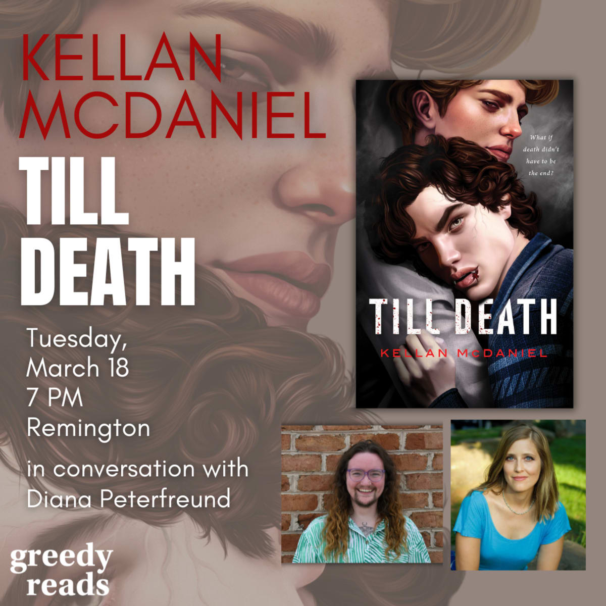 Diana Peterfreund in Conversation with Kellan Mc Daniel, discussing his new vampire YA, Till Death at Greedy Reads in Baltimore.